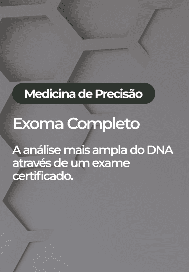 O sequenciamento completo do exoma, ou simplesmente Exoma, é um dos mais potentes exames da genética. O Exoma analisa simultaneamente, em um único teste, quase todos os éxons de mais de 20 mil genes do genoma humano. O teste compreende o – 1. sequenciamento de todas as regiões codificantes do genoma humano (os éxons), – 2. áreas flanqueadoras dos éxons, – 3. sequenciamento do DNA mitocondrial e – 4. análise das variações no número de cópias (CNVs) para pesquisa de deleções e duplicações cromossômicas.